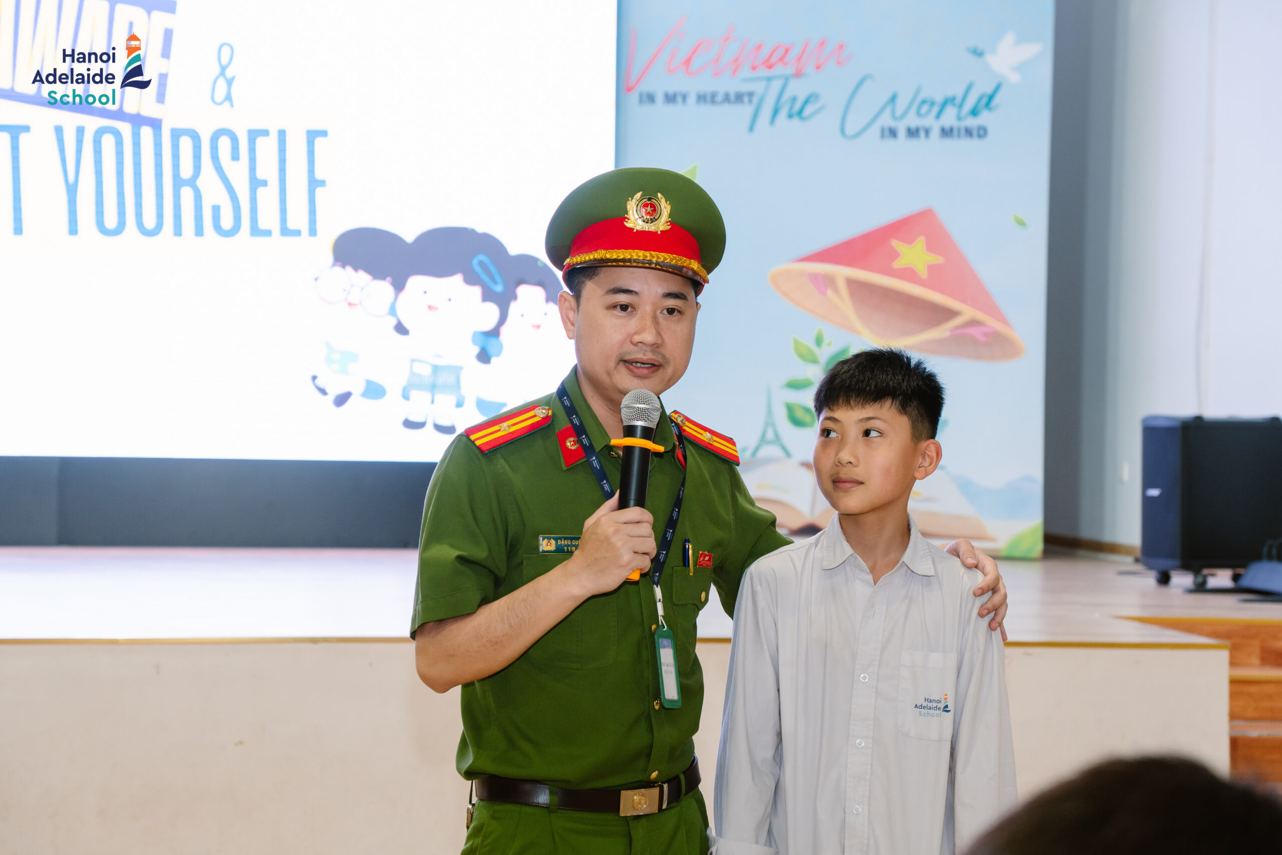 At primary school age, as children begin to explore the world more independently, the need to understand personal safety and how to protect themselves becomes especially important. Understanding this, Hanoi Adelaide School’s Duong Noi campus organized the “Be Aware and Protect Yourself” workshop, providing HASians with the opportunity to access practical knowledge and essential skills, under the direct guidance of the Duong Noi Ward Police.