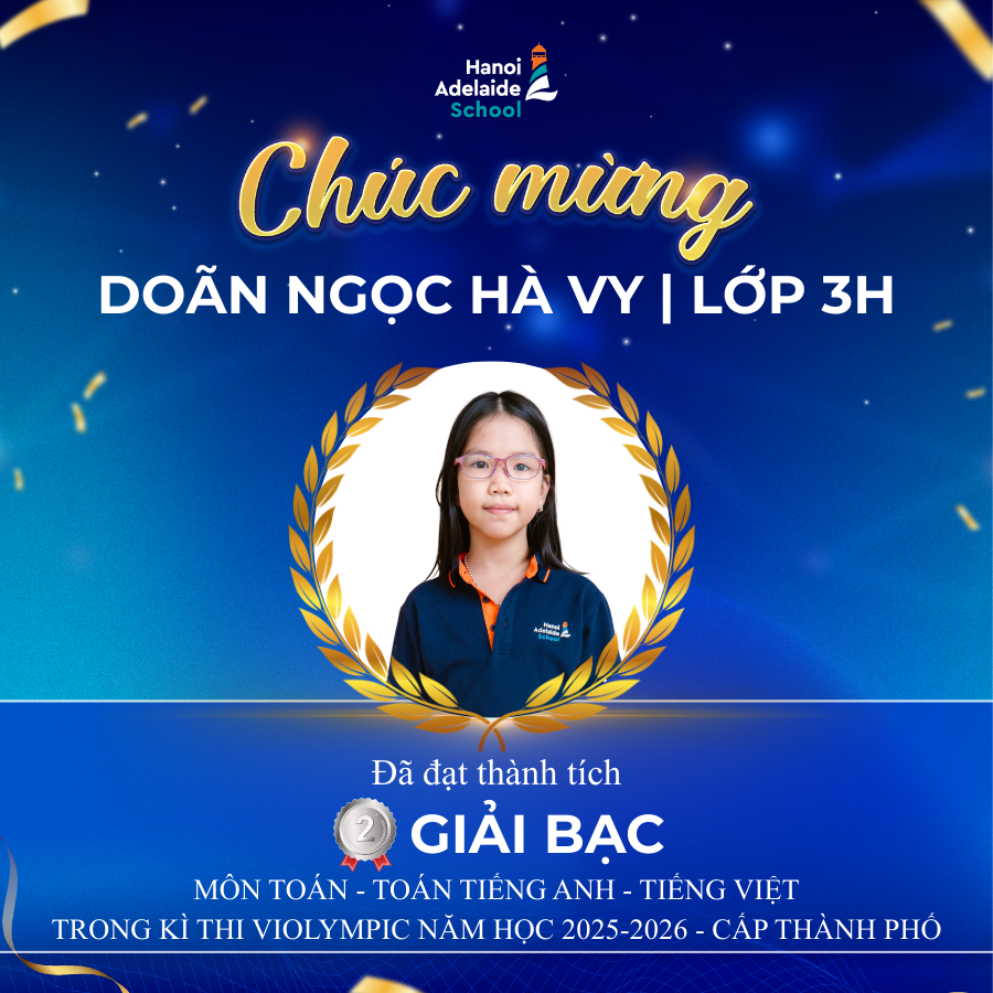 Winning awards in three different subjects clearly reflects Hà Vy’s well-rounded academic foundation, flexible application of knowledge, and dedicated learning spirit. In particular, her achievement in Mathematics in English demonstrates confidence and initiative in approaching knowledge through a second language — an important advantage for today’s globally connected generation of students.