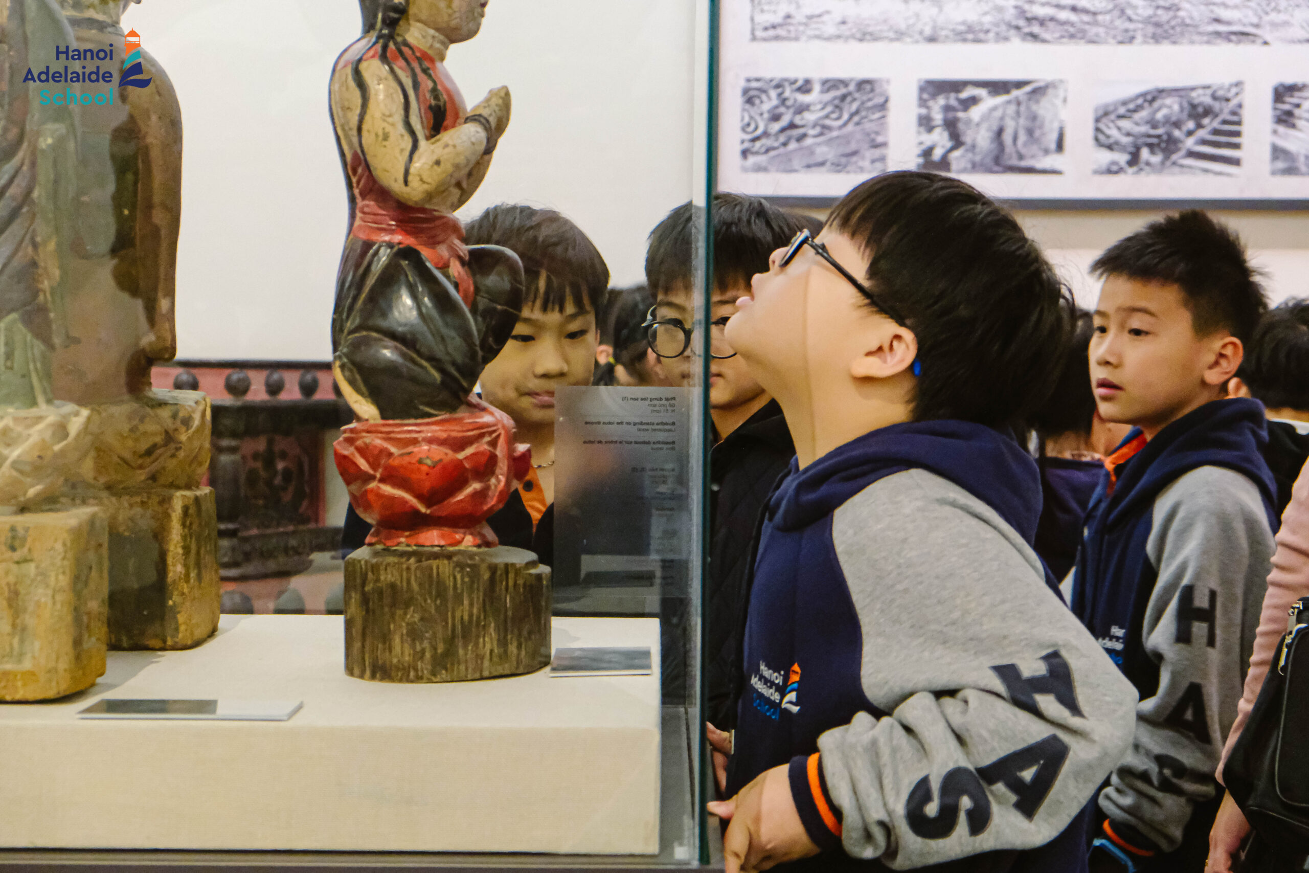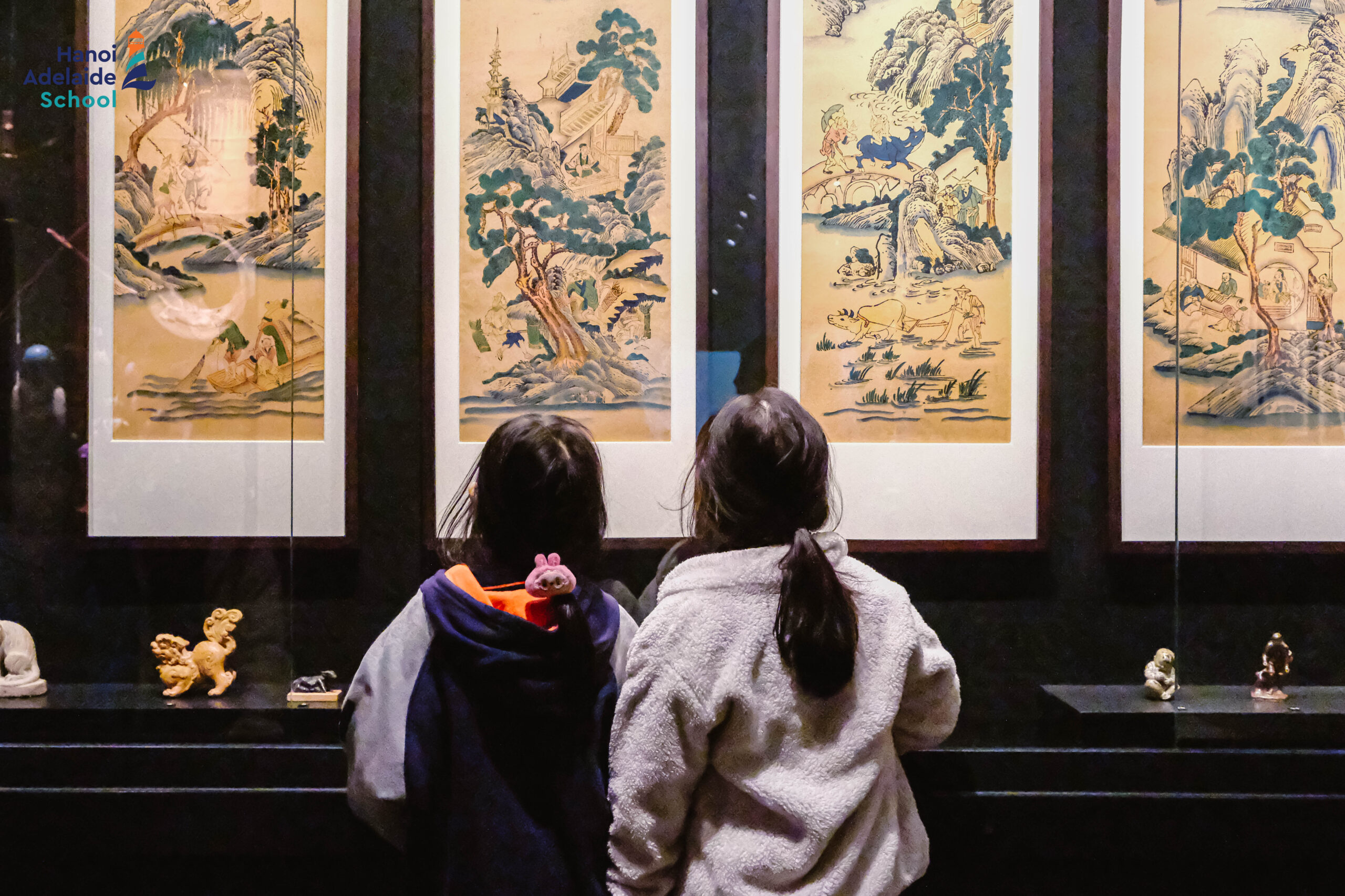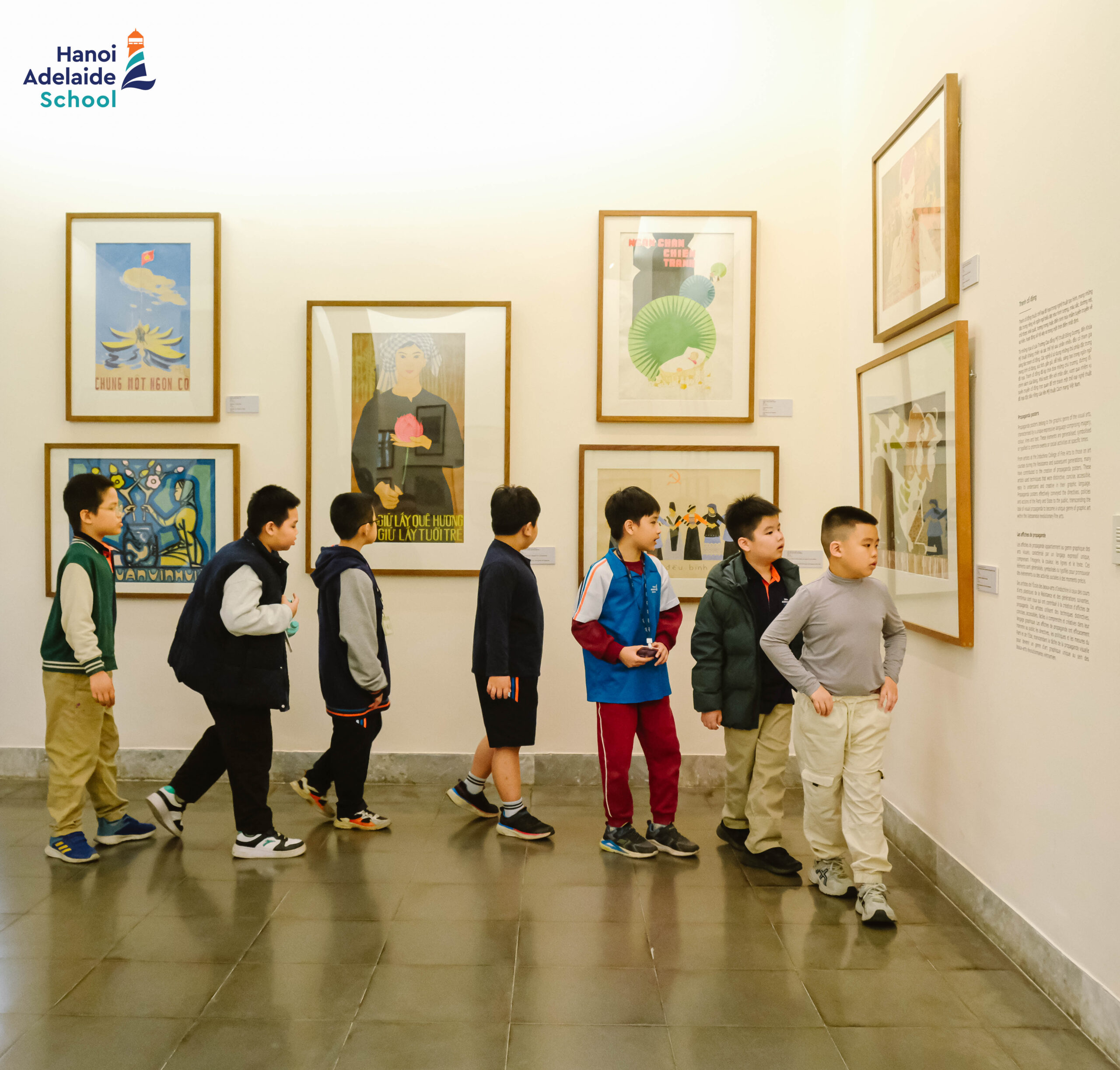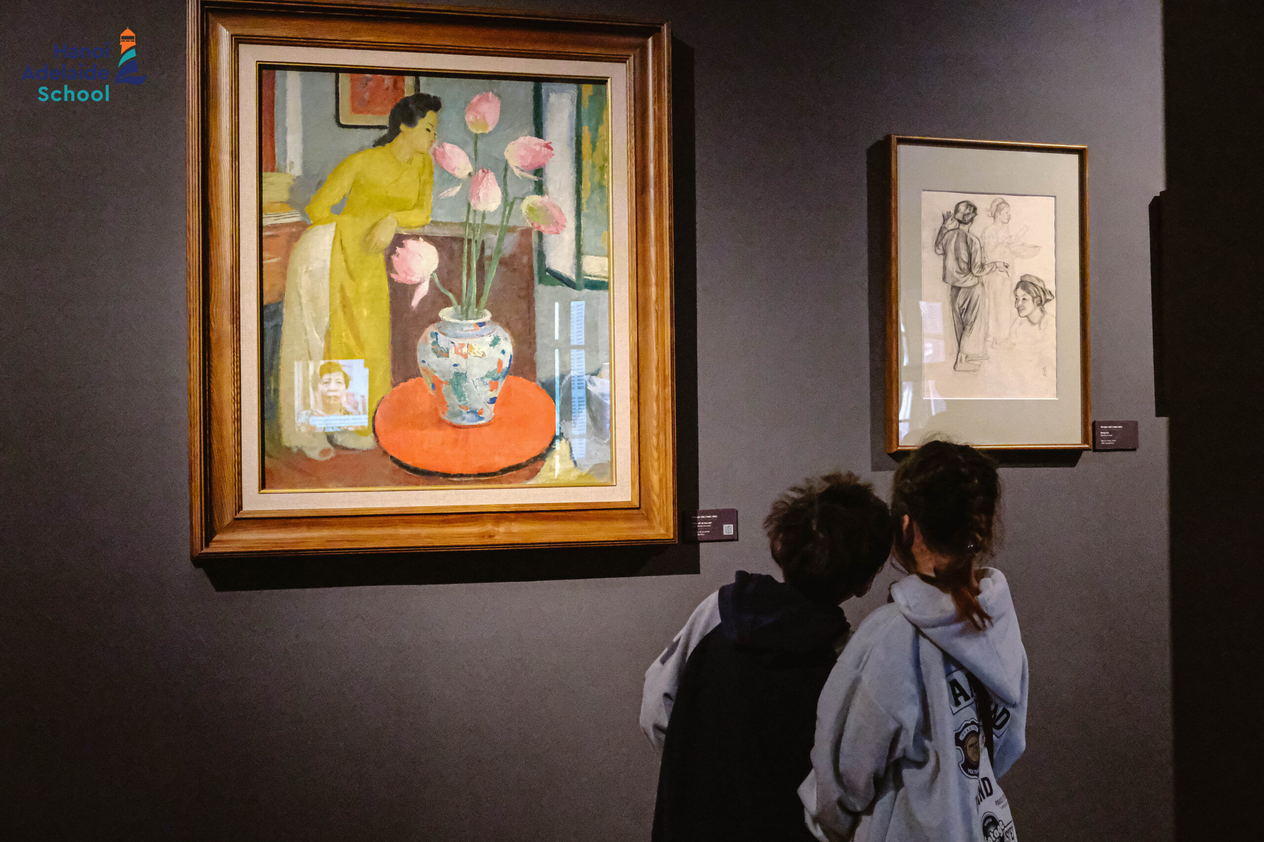 Tại không gian Bảo tàng Mỹ thuật Việt Nam, HASians được khám phá những giá trị lịch sử – nghệ thuật thông qua các hiện vật và câu chuyện sinh động. Mỗi góc trưng bày mở ra một thế giới mới, khơi gợi sự tò mò, giúp học sinh hiểu rằng: nghệ thuật không chỉ nằm trên trang sách mà hiện diện sống động trong đời sống và văn hóa dân tộc.